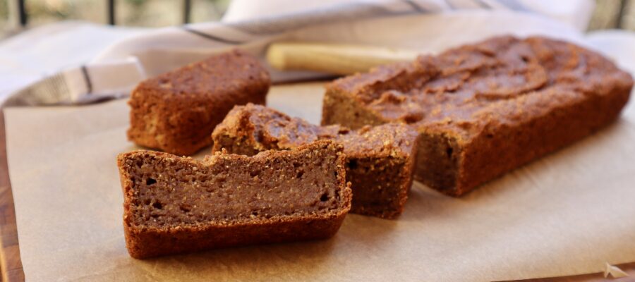 Bananbröd på mogna bananer, jordmandel- och kassavamjöl