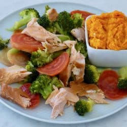 Lax med polkabetor, broccoli och morotshummus (AIP)