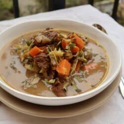 AIP, Köttgryta som är kokat länge för köttet ska bli riktigt mört. Den här grytan innehåller benbuljong i pulverform, lök, vitlök, svamp, selleri, sötpotatis och morot.