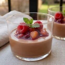 AIP. Pannacotta gjord på kokosgrädde med carob som ger en mild kolaliknande smak, balanserad med vanilj och lätt sötma. Servera med syrliga bär som kontrast till det söta, t ex hallon och mango.