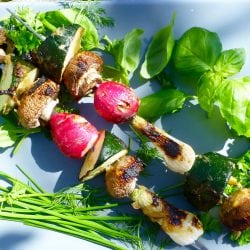 AIP. Grillade grönsaker som fått en liten rubb med vår egen bbq-sås gjord på rabarber och lök. Detta ger dem en sötsur smak som passar bra till grillat. Att grilla rädisor är ett gott alternativ när man äter AIP och inte äter tomater!