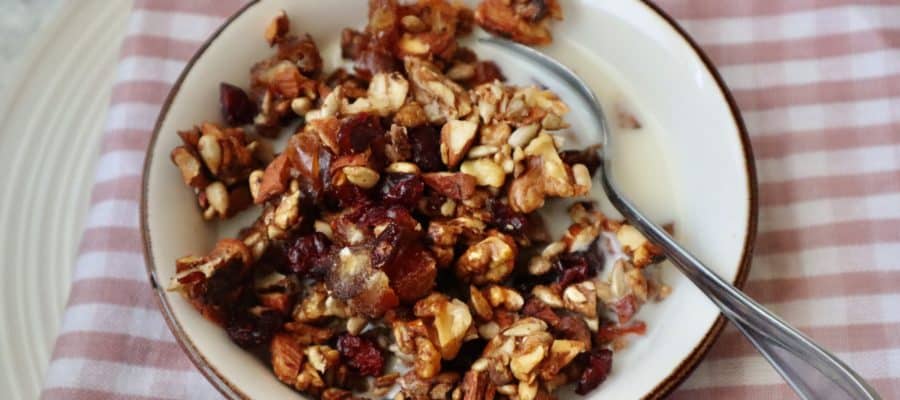 Granola med nötter, frön, dadlar och tranbär (Paleo)