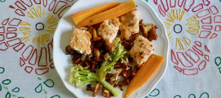Kantareller med lax, morötter och broccoli (AIP & Paleo)