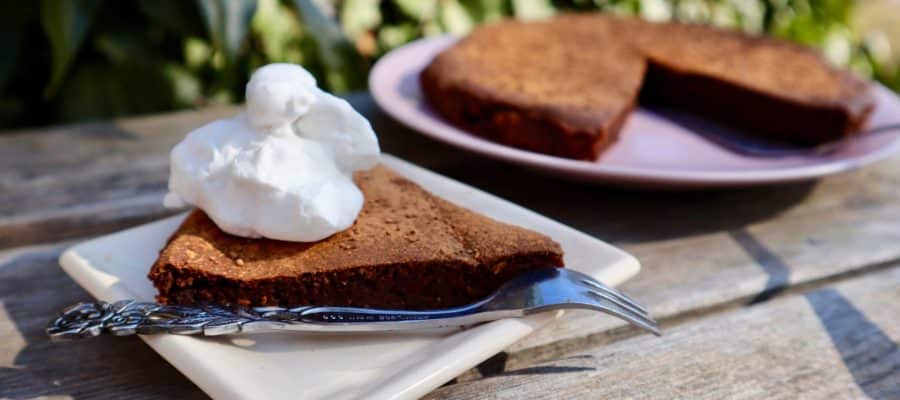 Grädda i 20-25 minuter. Låt svalna innan du skär upp den och pudra över lite carob. Servera med färska bär eller kokosgrädde, eller bara avnjut som den är.