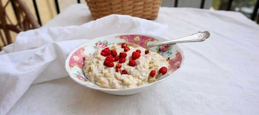 AIP. Riven zucchini efterliknar gröt väldigt bra i konsistensen. Genom att blanda med banan och äpple blir gröten söt. Krydda med kanel på toppen om du vill.